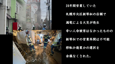 1993年8月9日に先代が創業してからは札幌で営業をさせて頂いておりましたが2020年8月8日、創業記念日の前日に札幌の本社兼工場で漏電による火災が発生。